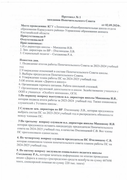 КГУ «Ленинская общеобразовательная школа отдела образования Карасуского района» Управления образования акимата Костанайской области